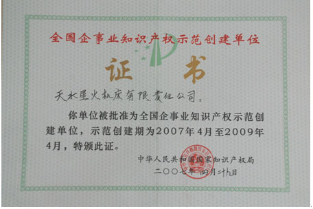 2009年12月,公司獲“全國企事業知識產權示范單位”證書