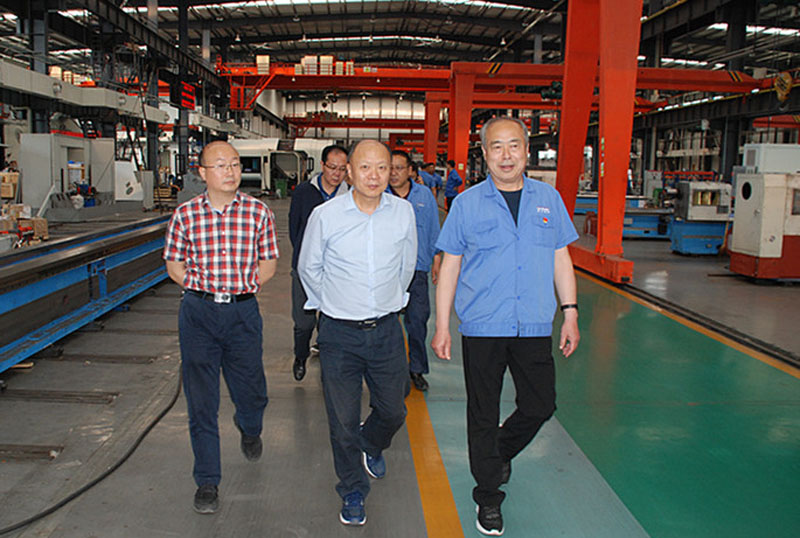 星火機床公司領導趙錦銘、劉生玉、胡慶峰及行政綜合部負責人陪同參觀生產現場、進行調研考察。