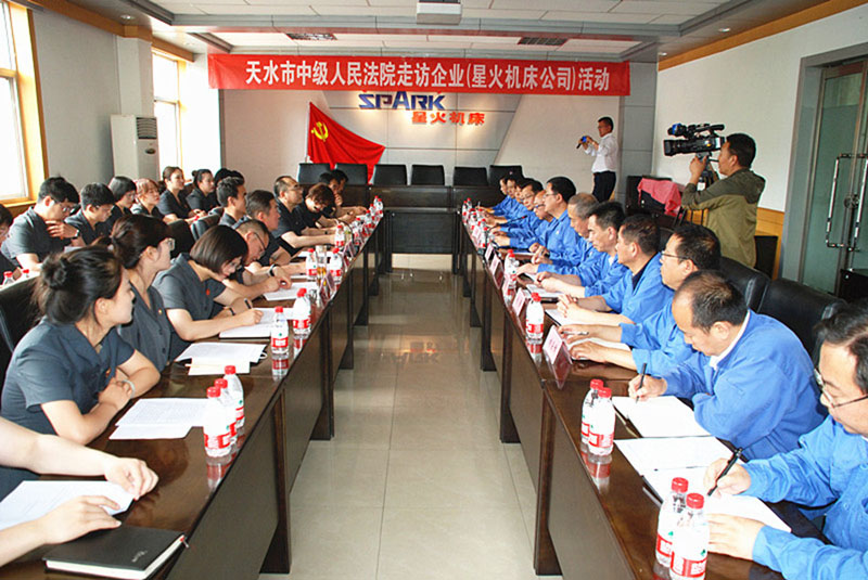6月4日,天水市中級人民法院黨組書記、院長馬忠福,黨組副書記、常務副院長張繼明,帶領由審管辦負責人李蘭、民一庭庭長楊宏權、民二庭副庭長朱金平、周昊,辦公室負責人王貴錄及近30名法官來開展普法進企業活動。星火機床集團公司黨委書記、董事長蔣保權,黨委副書記、集團公司副總經理蔣俊,以及趙錦銘、鞠家兵、劉生玉、劉強、展海瑜、胡慶峰、楊克祥等領導,黨群工作部、財務金融部、生產協調保障部、銷售公司等部門負責人參加接待。