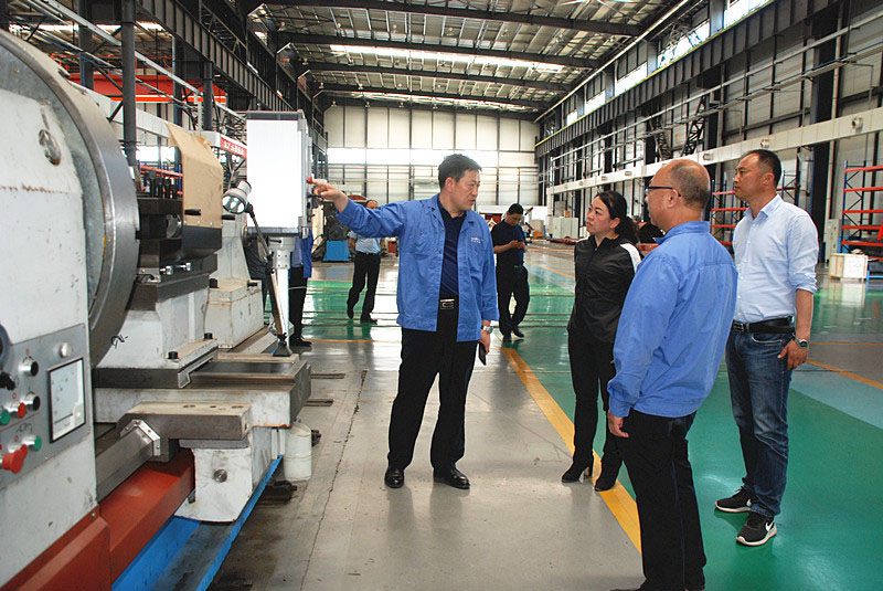 王雪芹一行來(lái)到機(jī)械裝備公司生產(chǎn)現(xiàn)場(chǎng),參觀了不同系列的機(jī)床產(chǎn)品。劉勝匯報(bào)了企業(yè)推進(jìn)“三化”改造工作情況,并對(duì)公司各類(lèi)產(chǎn)品的用途、性能一一作了介紹。(康永明)