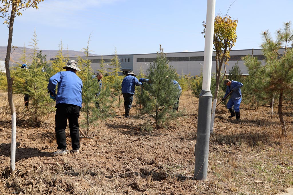 種下一抹希望,收獲一片春光。星火機床物業公司移栽的近300株油松、側柏,既美化了工業園生產環境,也是對創城活動的一次助力。