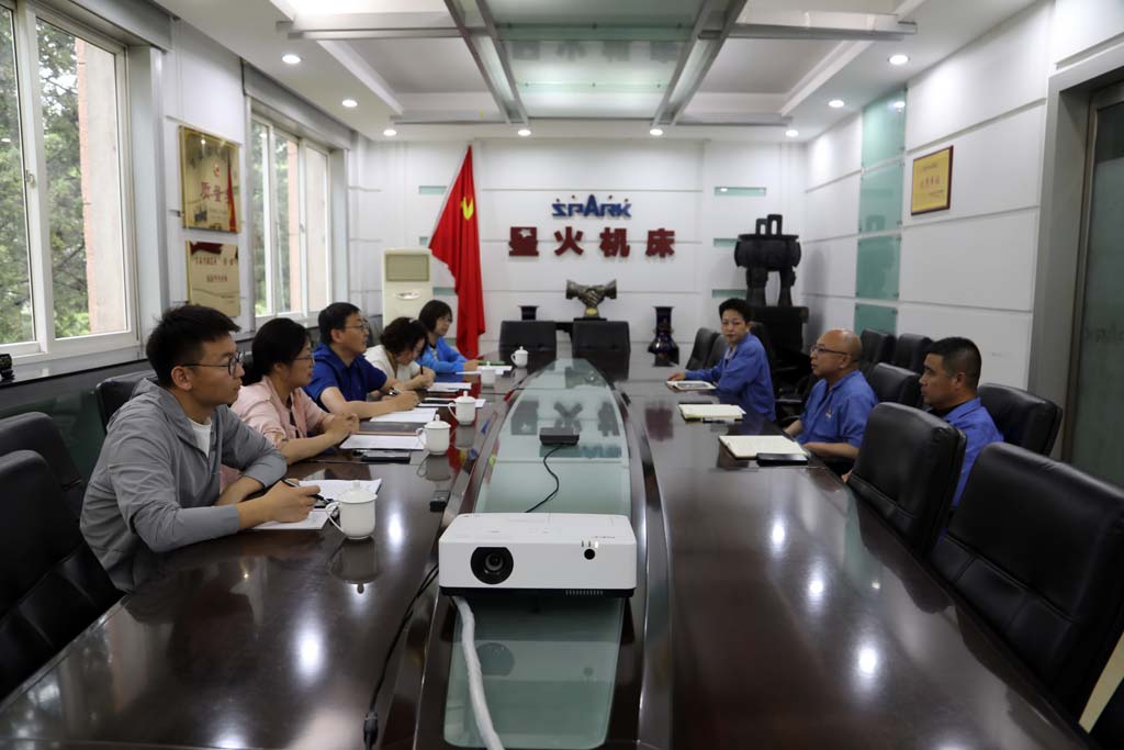 5月29日,省工信院裝備制造研究所所長藺峰,省機械冶金工會副主任焦佳慶一行來星火公司調研產業規模和發展趨勢、創新能力和技術水平及企業工會工作等方面的情況。黨委副書記、星火機床集團公司副總經理、工會主席蔣俊及相關部門負責人陪同調研并座談交流。